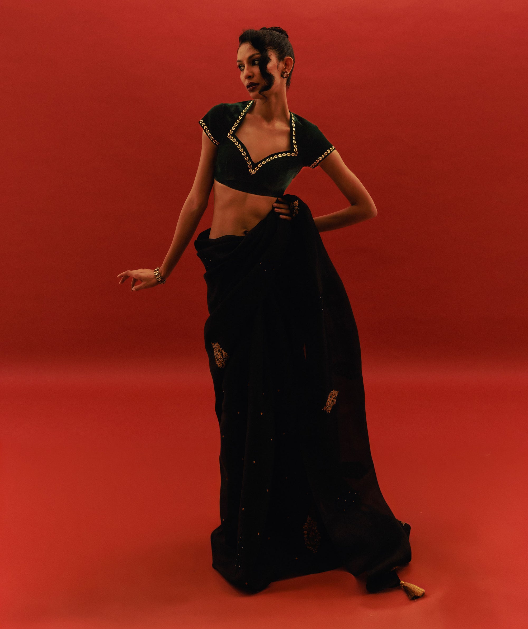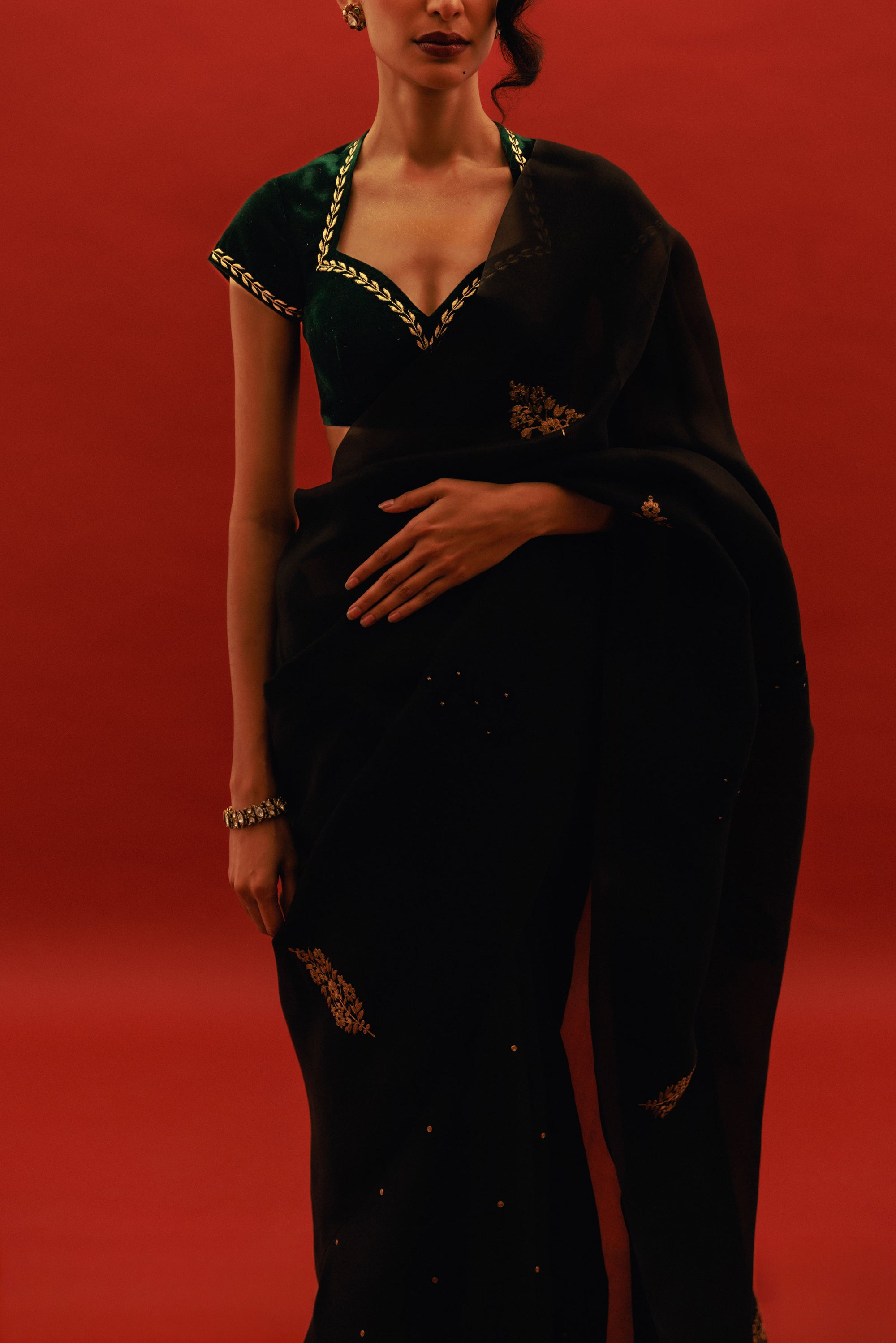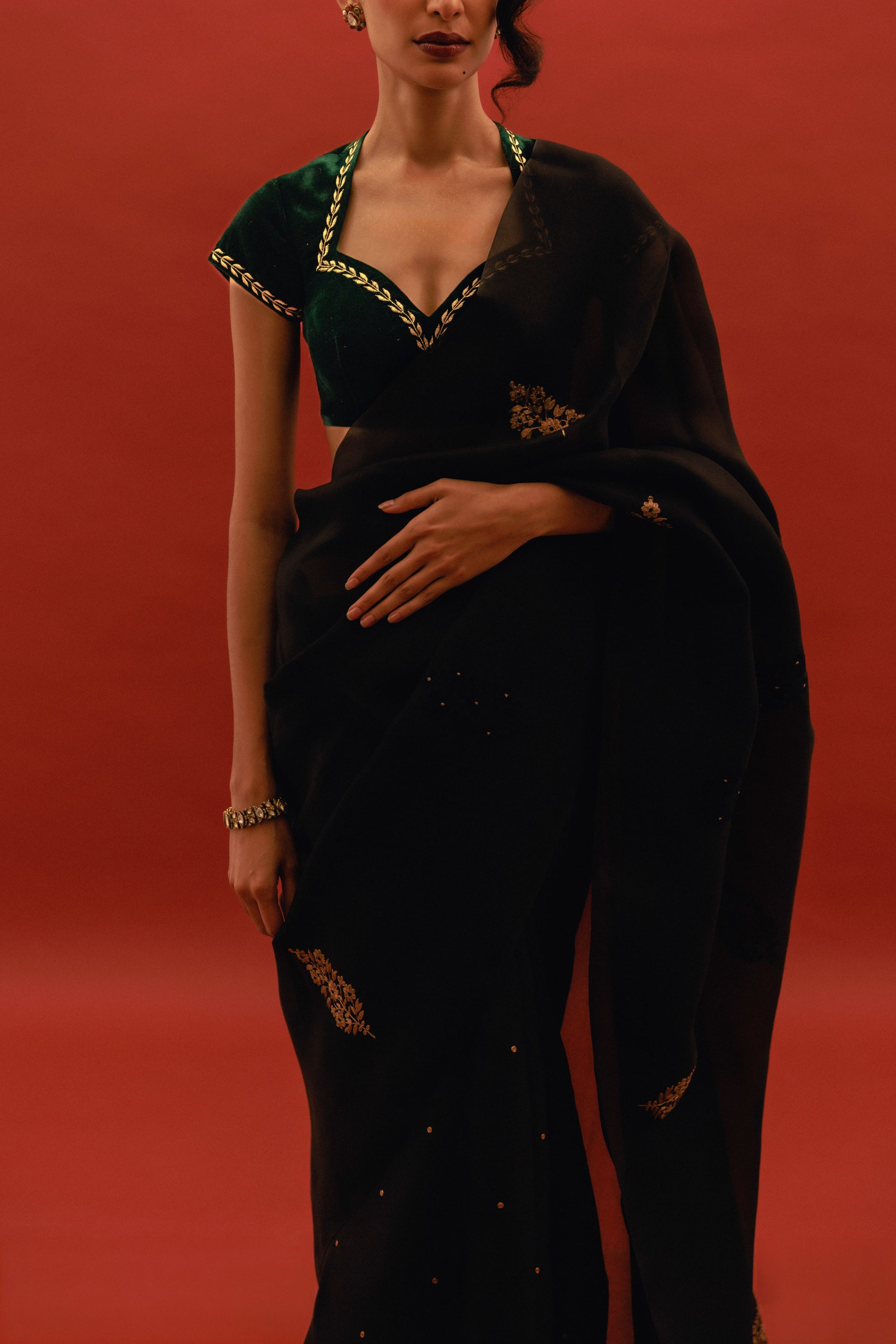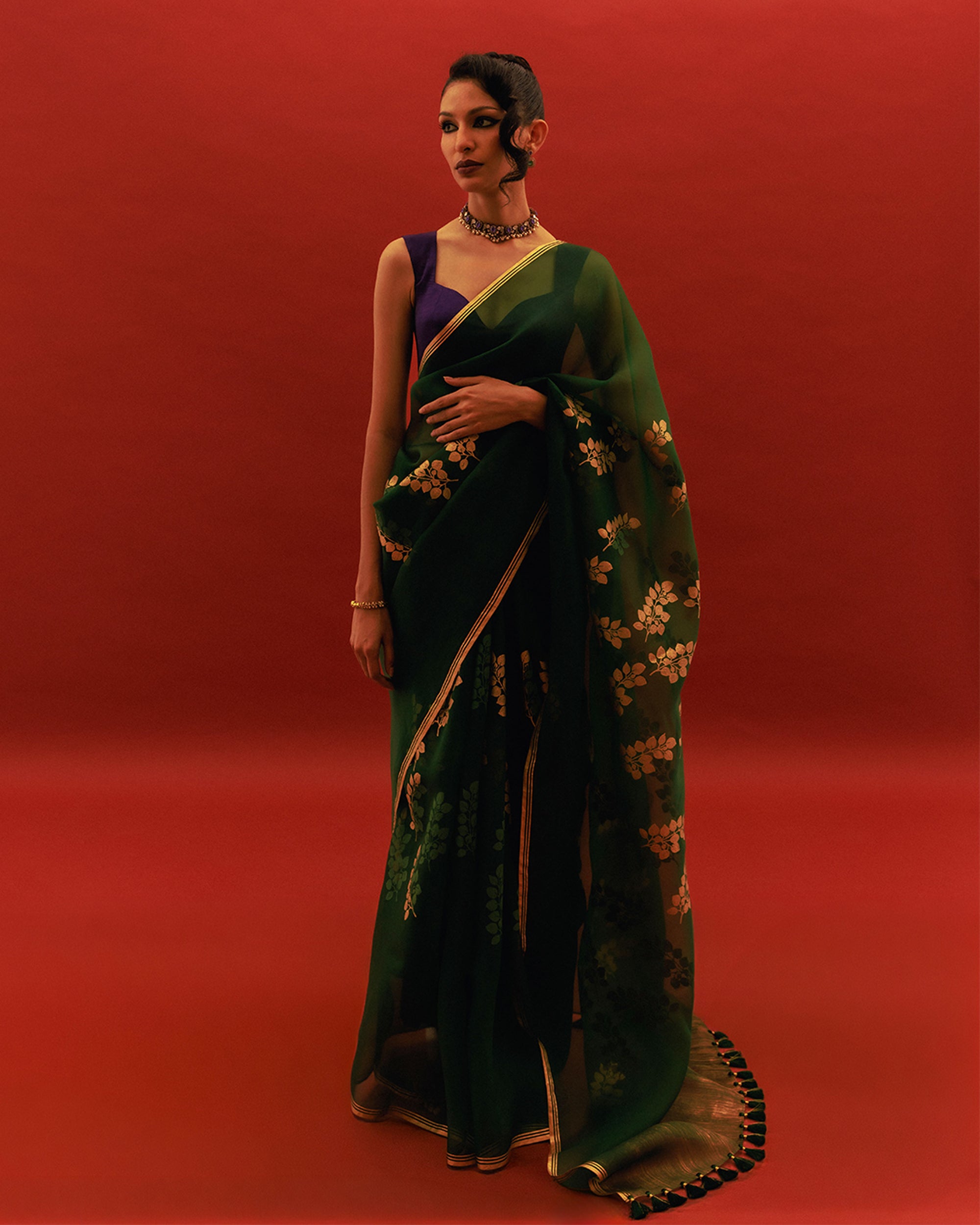 Visit our store to discover our exclusive range of designer sarees and home decor.